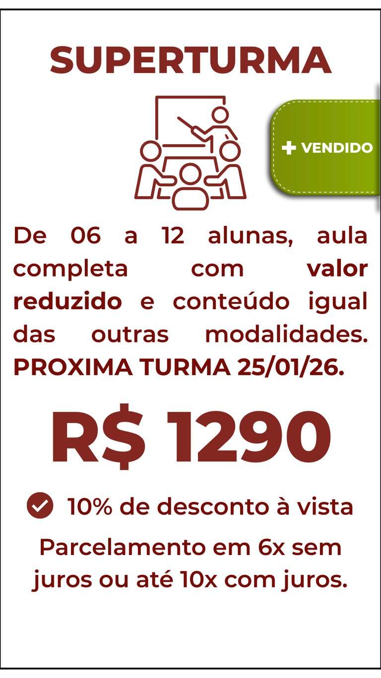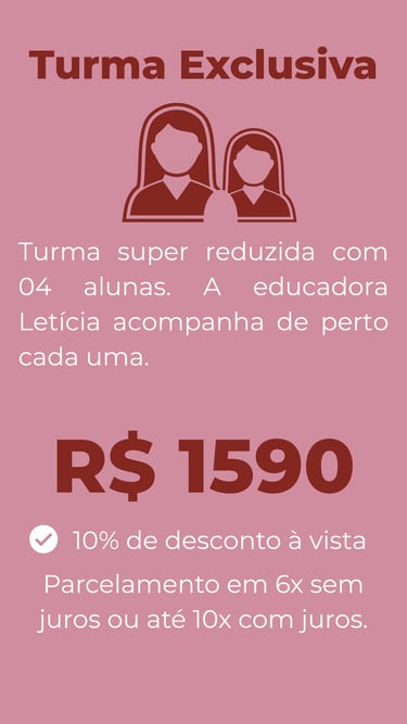 Máximo de 4 alunas por turma, o aprendizado em turma de uma troca de vivências incrível.
